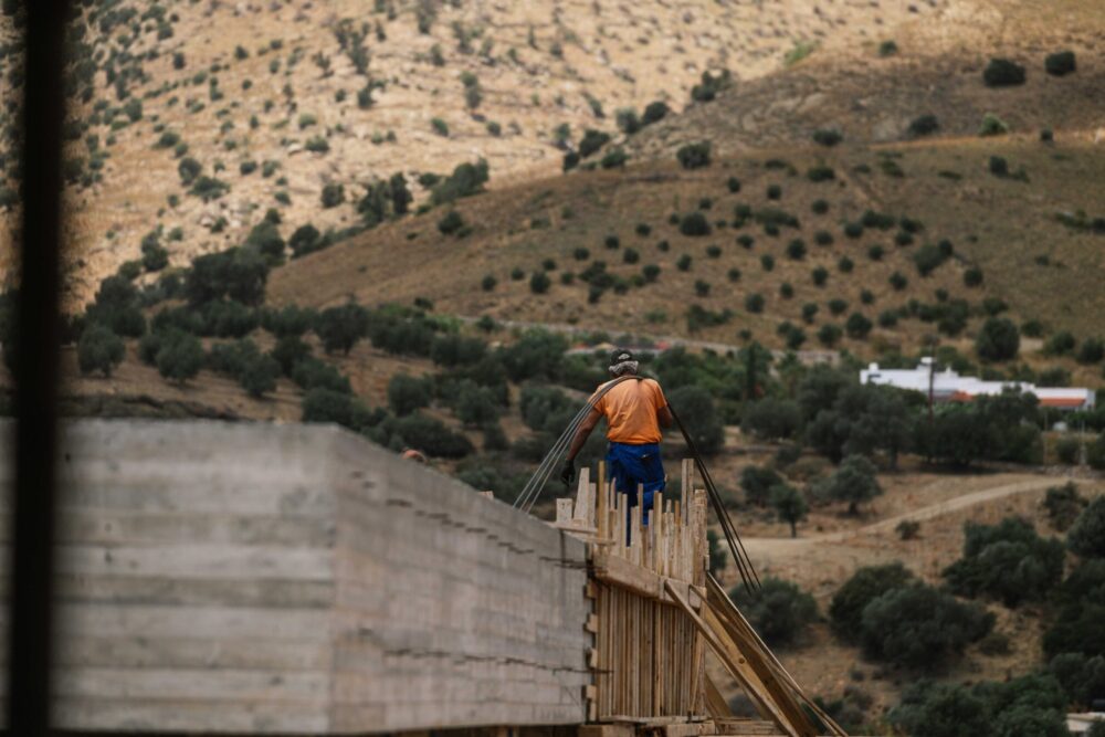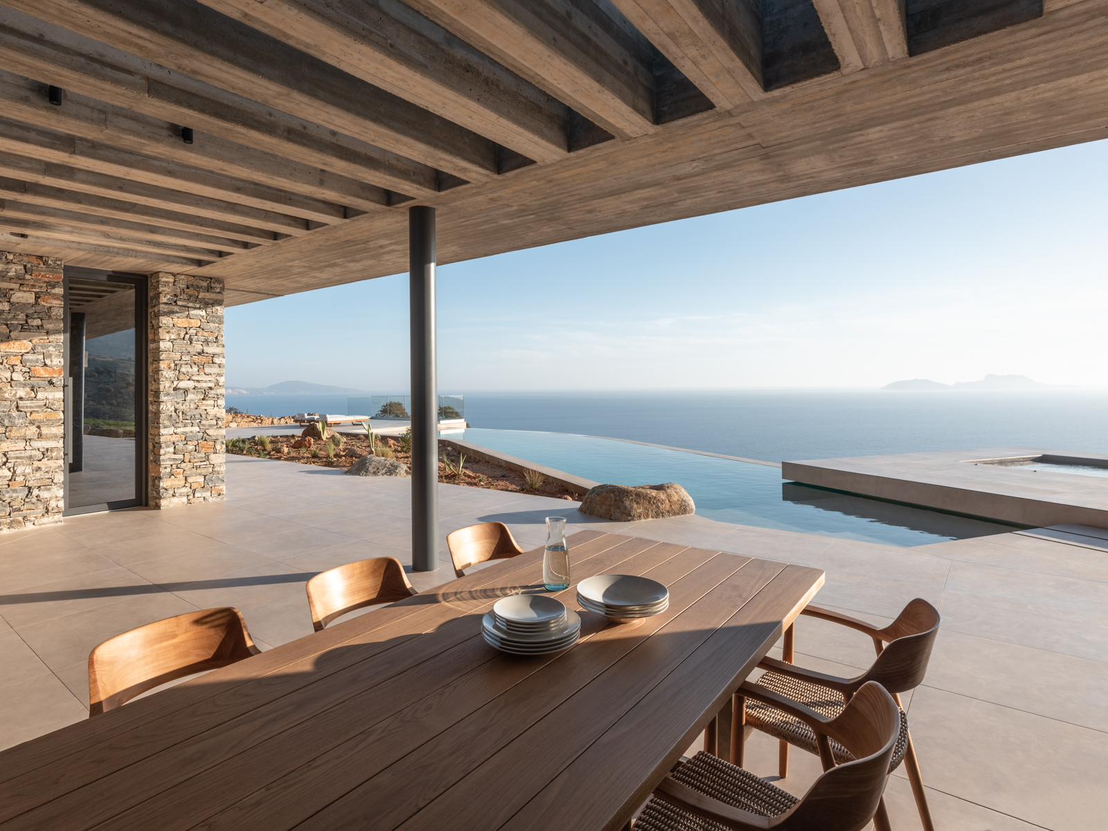 The building is positioned following the topography lines of the plot, where it drops to the sea. This allows for maximum views throughout the house.