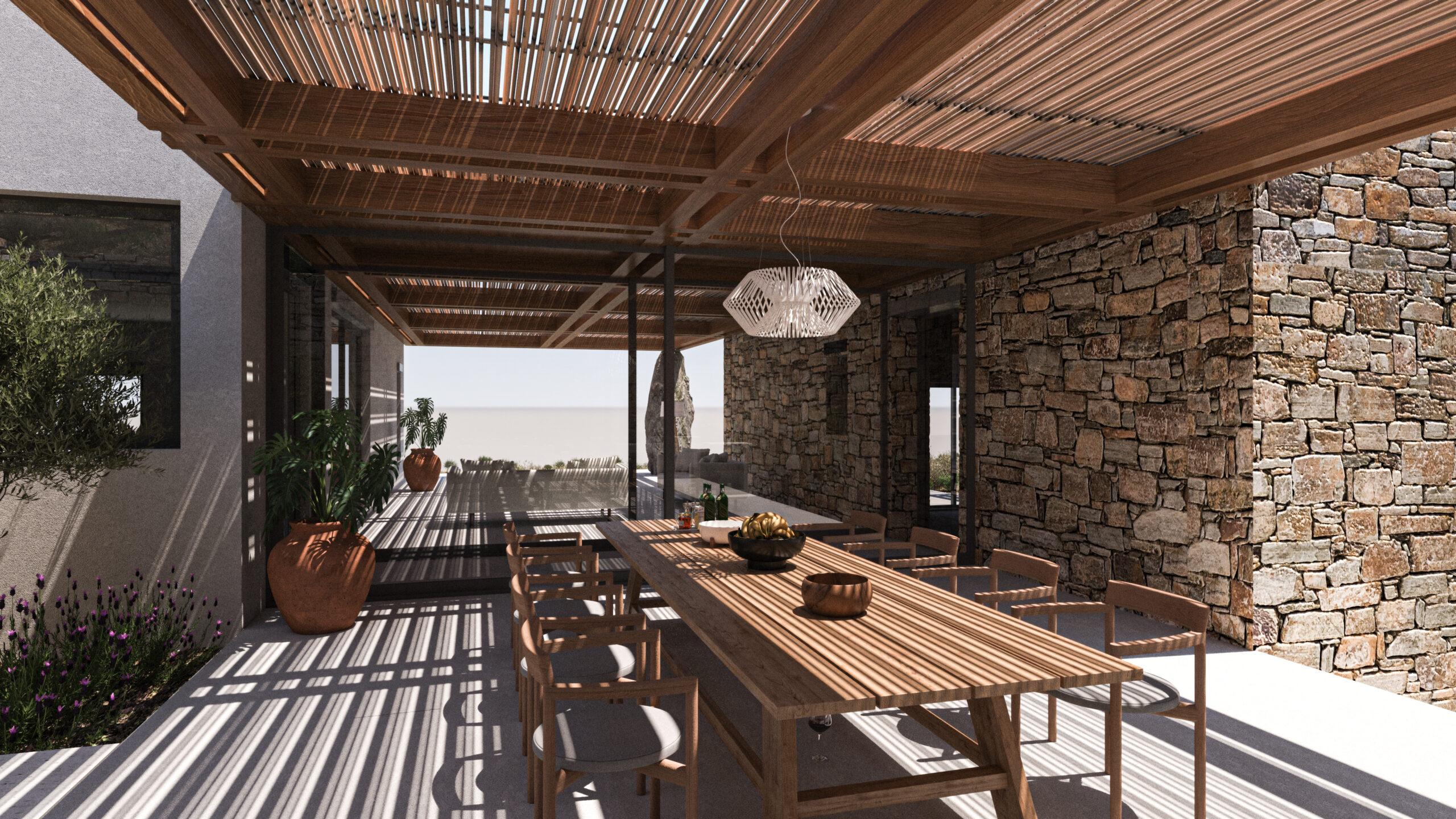 Το συγκεκριμένο αρχιτεκτονικό έργο είναι μια ανάσα αρμονίας μεταξύ της μοντέρνας μελέτης και του φυσικού τοπίου. Τοποθετημένο σε μια αθέατη και ανέγγιχτη περιοχή, αποπνέει μια αίσθηση αποκλειστικότητας και ηρεμίας, με τα μάτια να στρέφονται αναπόφευκτα στην έκταση του γαλάζιου ορίζοντα.